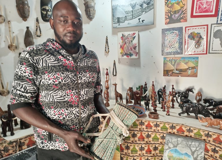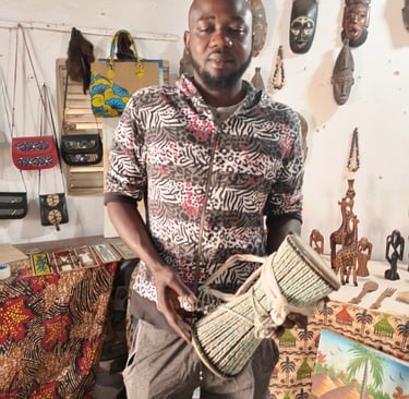 Chaque création de Amdy Diao raconte une histoire unique, tissée avec passion et savoir-faire ancestral. Spécialisé dans bijoux, tissage, poterie, maroquinerie, sculpture, etc., il perpétue les traditions artisanales sénégalaises tout en y apportant sa touche personnelle et contemporaine.