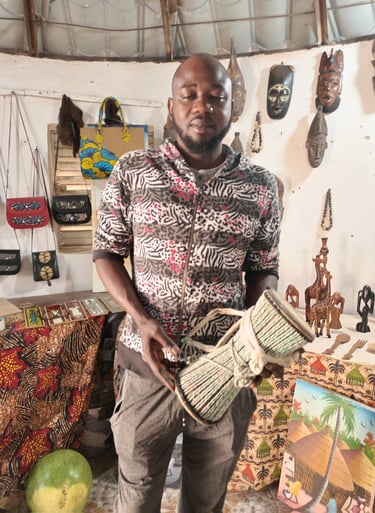 Chaque création de Ousseynou raconte une histoire unique, tissée avec passion et savoir-faire ancestral. Spécialisé dans bijoux, tissage, poterie, maroquinerie, sculpture, etc. , il perpétue les traditions artisanales sénégalaises tout en y apportant sa touche personnelle et contemporaine.